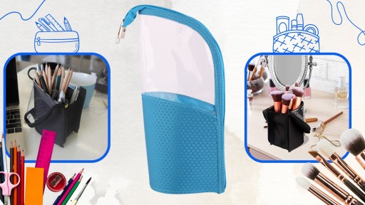 - ✅ W kosmetyczne zmieścisz aż 24 różnych pędzli w pozycji stojącej lub zamkniętej lub aż 35 kredek, długopisów czy ołówków. Długość pędzla do makijażu nie może być jednak dłuższa niż 23 cm.