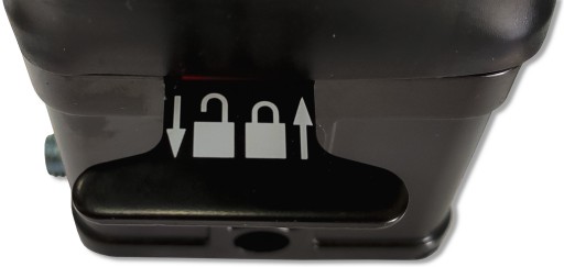 Joystick posiada mechanizm bezpieczeństwa (2) umożliwiający blokadę ruchów główki joysticka, w celu zapobiegnięcia przypadkowego uruchomienia: