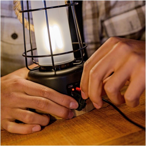 Lampa kempingowa LED firmy Brennenstuhl. Klimatyczny sprzęt, stanowiący nie tylko idealne źródło światła, ale też ratunek w nagłych sytuacjach, dzięki wbudowanej funkcji powerbanka.