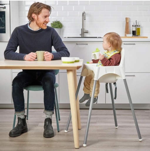 Krzesło wysokie ANTILOP można z łatwością rozmontować i zabrać ze sobą, aby dziecko siedziało bezpiecznie i stabilnie, w domu, u znajomych lub w restauracji. Smacznego!