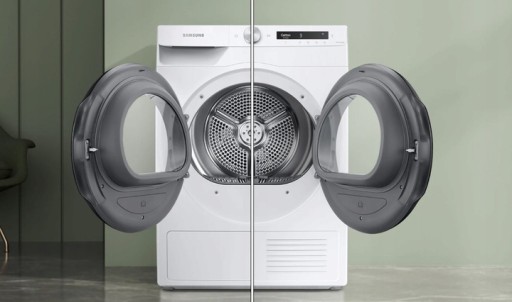 Suszarka kondensacyjna z pompą ciepła Samsung DV 90T5240AT o maksymalnym załadunku 9kg, z systemem Optimal Dry.