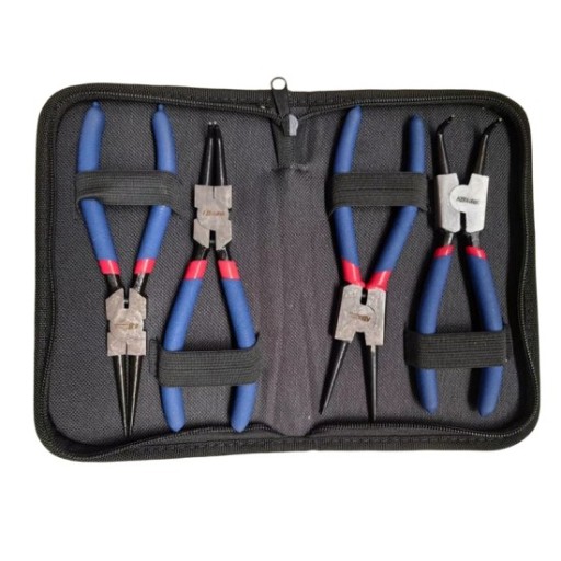 Zestaw zawiera 4 szt. szczypiec długości 180 mm do pierścieni Seegera: