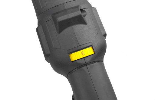 Prędkość obrotową można dokładnie regulować (6 stopni) w całym zakresie regulacji od 2800-5800 min-1 za pomocą przekładni umieszczonej na rękojeści