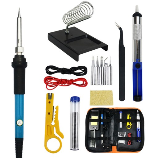 - Ściągacz izolacji, odsysacz, pęseta i podstawka pod lutownicę dołączone do zestawu usprawnią pracę