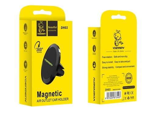 Wysokiej klasy magnetyczny uchwyt telefoniczny cenionej marki DENMEN to produkt stworzony z myślą o wymagających kierowcach. Model DH03 łatwo zamontujesz na kratce nawiewu swojego auta. Służy do tego specjalny klips, zapewniający stabilność całej konstrukcji.