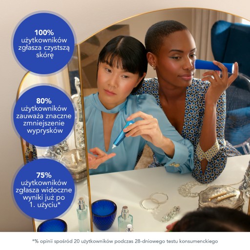 Niebieskie światło LED to nieinwazyjny procesory o długości fali świetlnej 415 nm do penetracji skóry. Zabijają bakterie, które powodują zanieczyszczenie, a następnie rozpuszczenie nowych wyprysków. Działanie pulsacyjne T-Sonic™ niszczy mikrokrążenie, ułatwia odnowę skóry w celu wyleczenia wyprysków i niszczenie blizn powstałych na skutek po niszczyach. Zwiększone wchłanianie kosmetyków, produkty przy zabiegach punktowych, takie jak żel ESPADA™ BHA+PHA Blemish Solution.