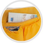 Większe kieszenie na gumki pomieszczą np. pieluszki, śpioszki.