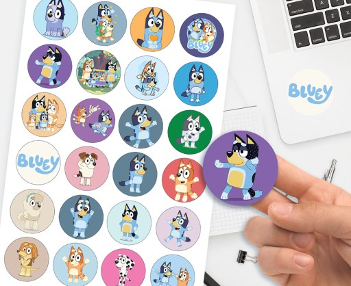 W zestawie otrzymujesz arkusz A4 zawierający aż 24 naklejki o średnicy 40mm.
