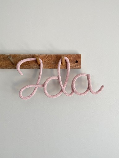 Napis ze sznurka do pokoju dziecięcego, którym może być imię dziecka lub dowolnie wybrane słowo o długości 3 liter.