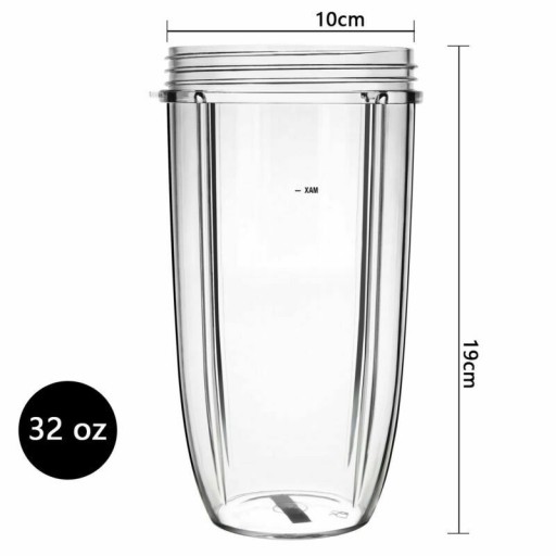 Przedmiotem sprzedaży jest nowy przeźroczysty kubek / kufel / pojemnik / bidon o pojemności 500ml (18oz) + 700ml (24oz) + 900ml (32oz) do blendera kielichowego Nutribullet, Nutri Blitzer, Nutri Drink Pro, Nutri Master, Nutri One, GastroBack, Petra NutriPro Max, Sencor Nutri Blrnder do modelu o mocy 600w, 700w, 900w, 1000w i 1200w.