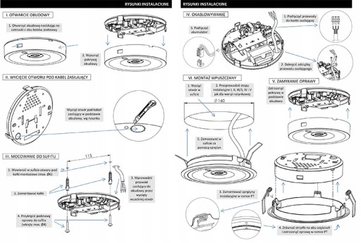 Lampa awaryjna Starlet ROUND zestaw z ramka umożliwiającą montaż oprawy podtynkowo.