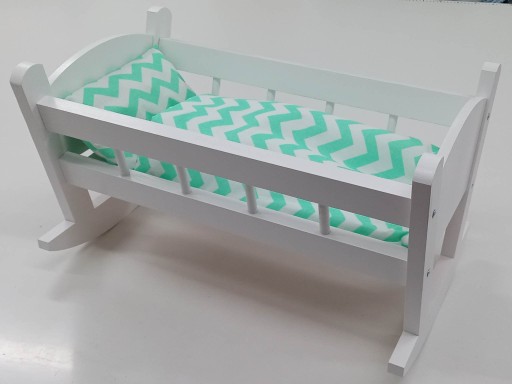 KOŁYSKA DLA LALEK BIAŁA + POŚCIEL Z MATERACEM Materiał drewno tkanina