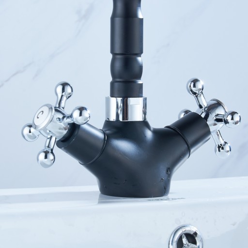 Retro kran baterii Dwa uchwyty kuchenny baterii łazienkowy Mixer baterii czarny