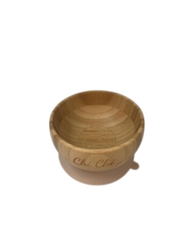 ChiChi bambusowa okrągła miseczka dla dzieci z przyssawką + łyżeczka