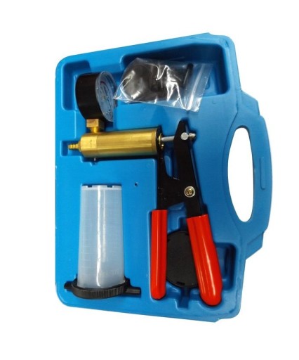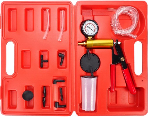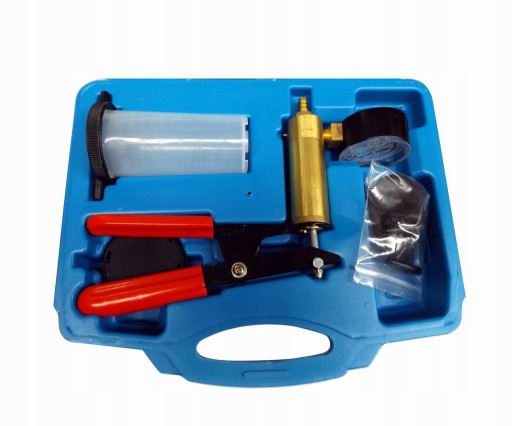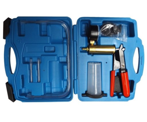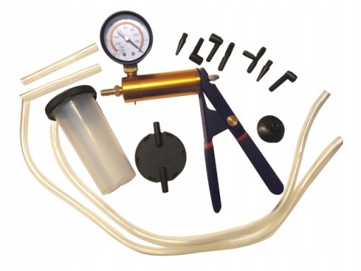 Opis narzędzia: Ręczna pompa podciśnieniowa do wymiany płynu i wytwarzania podciśnienia. Uniwersalna, z wieloma akcesoriami w poręcznej walizce