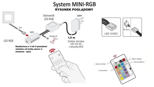 5-punktowe OŚWIETLENIE RGB SQUARE z pilotem