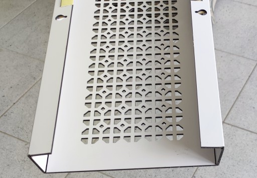 Osłona ażurowa wykonana z ALUCBONDU gr. 3mm Materiał jest odporny na temperaturę, nie blokuje przepływu ciepła i jest wyjątkowo wytrzymały.