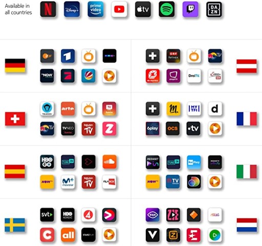- Netflix, YouTube i wiele więcej: strumieniowo przesyłaj swoje ulubione filmy i seriale na Netflix, YouTube, Prime Video, Disney+, DAZN, Zattoo, simpliTV, Apple TV lub innej ulubionej aplikacji strumieniowej i ciesz się nieograniczoną rozrywką.