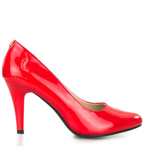 KORALOWE CZERWONE SZPILKI W SZPIC LAKIEROWANE