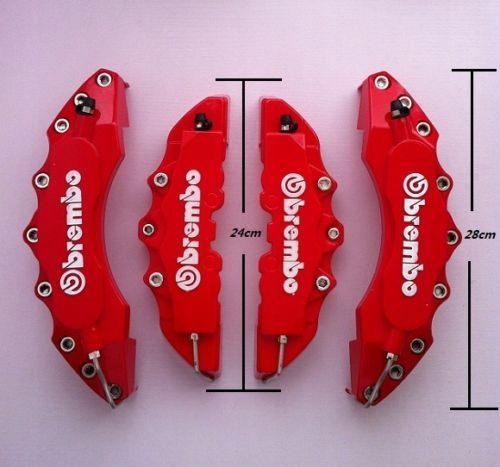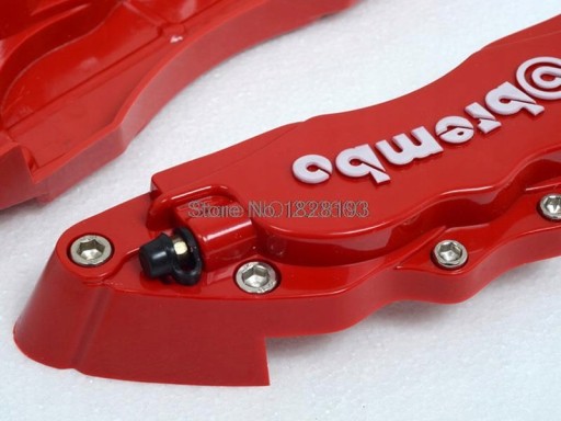 Nakładki z napisem BREMBO na hamulce z wypukłym napisem brembo i rurkami imitującymi doprowadzenie oleju, tworzywo - plastik abs. W komplecie na przednie hamulce i tylne hamulce. Odporny abs na wysokie temperatury.