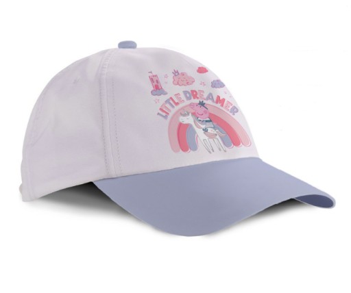 - Biało-szara czapka z daszkiem dla dziewczynki na lato z motywem Świnki Peppy