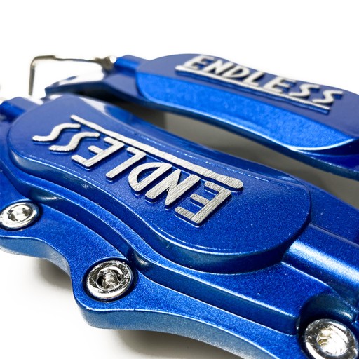 Aluminiowe nakładki z napisem ENDLESS na hamulce z wypukłym napisem ENDLESS i rurkami imitującymi doprowadzenie oleju. W komplecie na przednie hamulce dwie sztuki. Odporne na wysokie temperatury.