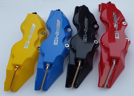 Nakładki z napisem AMG na hamulce z wypukłym napisem i rurkami imitującymi doprowadzenie oleju, tworzywo - plastik abs. W komplecie na przednie hamulce i tylne hamulce. Odporny abs na wysokie temperatury.