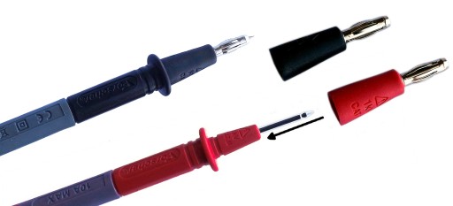 Adaptory typu "banan" 4mm ułatwiają pomiar w gniazdach elektrycznych - poprzez lepsze dopasowanie końcówek pomiarowych do średnicy otworu gniazda elektrycznego.