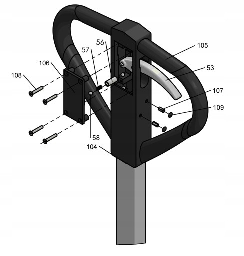 Dyszel kompletny jest zmontowany i gotowy do zainstalowania w wózku.