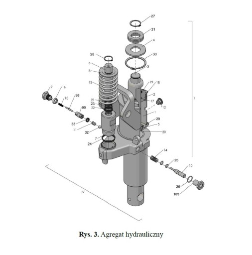 Dyszel kompletny - z cięgnem, dźwignią opuszczania, łańcuszkiem. Dyszel jest gotowy do montażu.