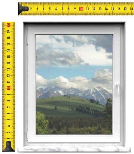 Szerokość żaluzji = szerokość szyby + 4cm (np. szerokość szyby to 80cm. Wówczas szerokość żaluzji to 84cm).