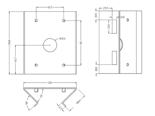 Uchwyt do montażu kamer na słupie, przystosowany do kamer i oświetlaczy. Może znaleźć zastosowanie również przy montazu innych urządzeń np. czujników ruchu, lamp oświetleniowych itp.