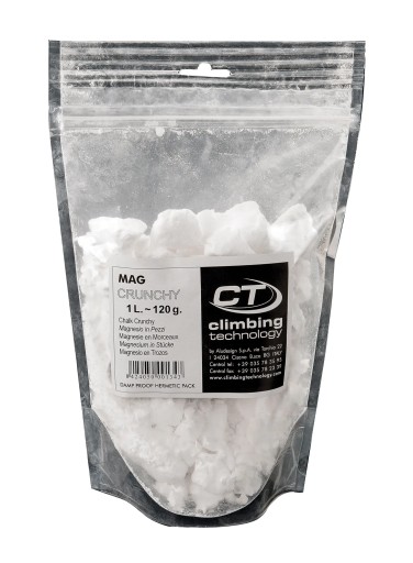 Climbing Technology Mag Crunchy 120 g jest niezbędnym wyposażeniem każdego wspinacza, który planuje realizację swoich wspinaczkowych celów w terenie, lub chce poprawić chwyt podczas treningu na campusie czy chwytotablicy. Za sprawą swojej struktury, idealnie sprawdzi się w użytku boulderowym
