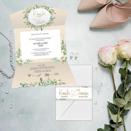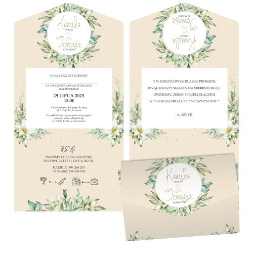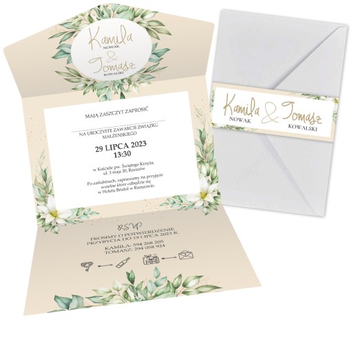 - wymiary zaproszenia: ok. 15.5 x 21,6 cm