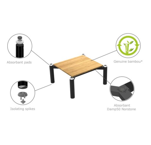 Skompletuj swój stolik, sam dobierz moduły i ich ilość - efekt gwarantowany! Każdy z modułów może stać samodzielnie. Czarne metalowe podstawy i grube (15mm) czarne szklane lub bambusowe półki wraz z rozwiązaniem tłumienia drgań.