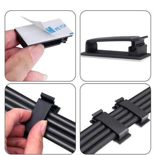 САМОКЛЕЯЩИЙСЯ ЗАЖИМ ДЛЯ КАБЕЛЬНОГО ОРГАНАЙЗЕРА 10x кабельных зажимов, черный