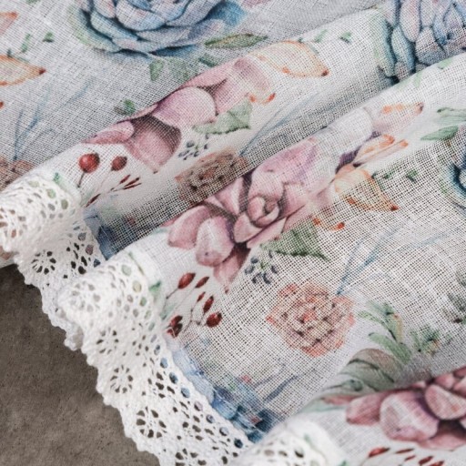 Zazdrostka z nadrukiem różowych i niebieskich kwiatów zdobiona koronką