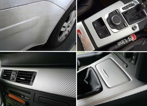 FOLIA CARBON KARBON 4D SREBRNA OKLEINA 50cm + RAKLA