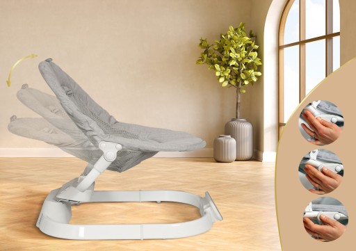 Produkt może posłużyć Wam nie tylko jako wspomagający usypianie bujak. Mechanizm blokady, który unieruchamia stelaż, zamienia Neno Nube w stabilny leżaczek, idealny do codziennego użytku i łatwy do przetransportowania.