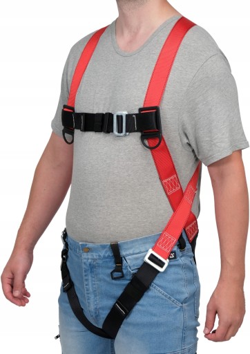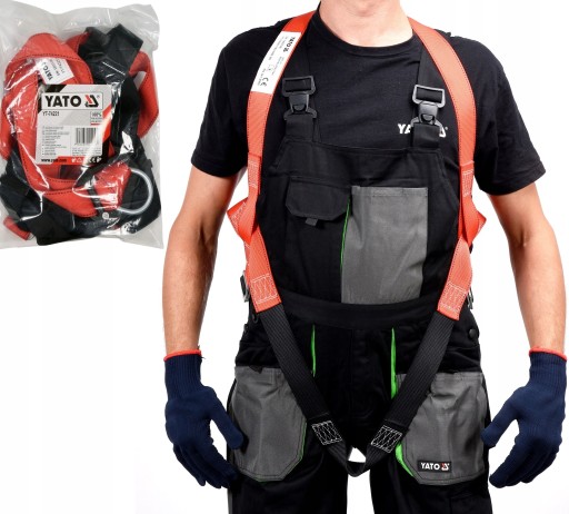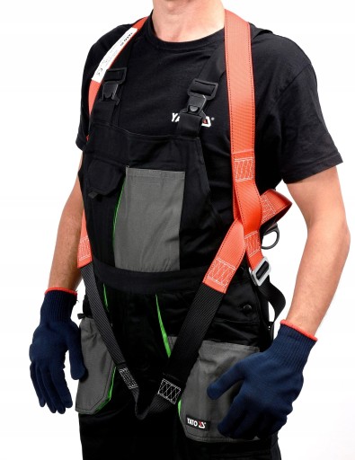 Szelki bezpieczeństwa YT-74221 to element systemu przeznaczonego do zabezpieczenia osób przed upadkiem z wysokości. Prawidłowo założone szelki muszą ściśle przylegać do tułowia oraz ud, by wraz z dedykowanym punktem zaczepowym móc równomiernie rozłożyć siły działające na ciało w trakcie upadku.