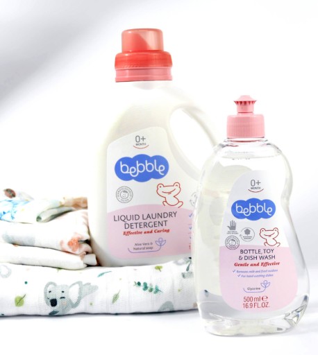 Należy myć dziecięce butelki, zabawki i akcesoria w roztworze 2-3ml płynu do mycia butelek, zabawek i naczyń Bebble na 1 litr ciepłej wody. Mocno zabrudzone naczynia lub przedmioty z zaschniętymi resztkami jedzenia lub mleka mogą być najpierw namoczone w takim roztworze. Po myciu należy wszystko dokładnie spłukać czystą wodą. Powinno się posiadać delikatny zmywak lub specjalną szczotkę, która będzie używana wyłącznie do akcesoriów dziecięcych.
