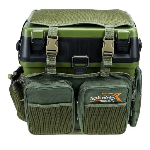NOWA skrzynia wędkarska HOKKAIDO z pianką siedziskiem. W unoszonej do góry klapie umieszczone są cztery zamykane na zatrzaski pudełka na drobny sprzęt wędkarski i przynęty, w dolnej części pokrywy znajdują się kasety z przegródkami na średniej wielkości akcesoria.