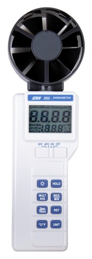 Przenośny anemometr z pomiarem temperatury i prędkości wiatru. Posiada zamocowaną na stałe turbinę, co pozwala na obsługę w jednej ręce. Posiada on wiele możliwości pomiarowych a także inne funkcje, które zwiększają jego atrakcyjność.