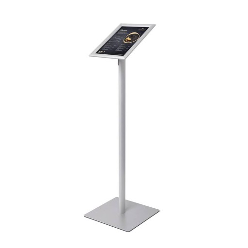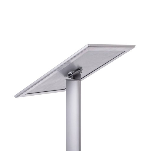 Najczęściej wybierany stojak informacyjny na menu, ogłoszenia, informację na całym rynku. Prosta konstrukcja stojaka pozwala umieścić w ramce plakatowej informację w formacie A4 w wersji pionowej i poziomej.