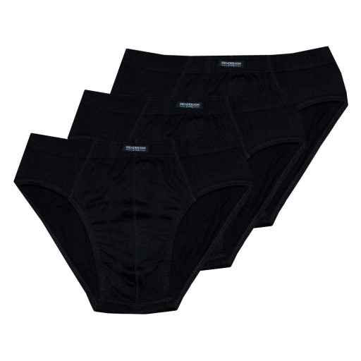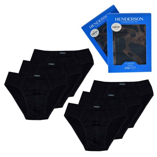 Dokonując zakupu na tej aukcji otrzymasz dwie paczki po trzy sztuki czarnych slipów marki Henderson. Na zdjęciu obok pokazano przykładowe opakowanie produktu.