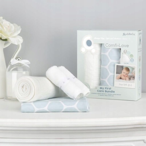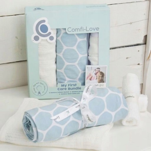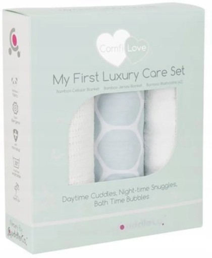W zestawie znajdziesz kocyk bambusowy idealny do codziennego użytku, 2 myjki bambusowe do kąpieli o doskonałej chłonności oraz tkany kocyk, którym możesz okryć dziecko podczas snu.