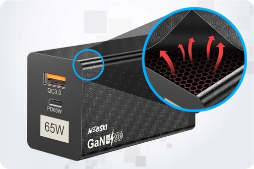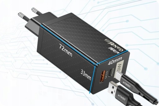⚡ 65W MOCY, PORT USB TYP C, PORT USB-A, POWER DELIVERY, QUICK CHARGE 3.0, Technologia GaN ⚡