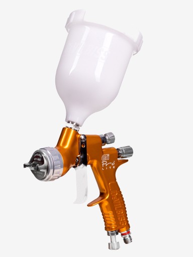 GTi Pro LITE DeVILBISS "i-system pro". Wykonany z niezwykłą dbałością i starannością. Technologia zapewnia bardzo wysoką jakość produktu oraz świetne walory użytkowe, min. podczas czyszczenia po użyciu produktów konwencjonalnych oraz wodorozcieńczalnych. Projekt pistoletu GTi Pro LITE to nowy pomysł, w którym fundamentalną rolę odegrała technika aplikacji produktów oraz ergonomia. Spust i uchwyt pistoletu zostały odpowiednio zaprojektowane tak, a by lakiernik podczas pracy miał jak najlepszy komfort lakierowania. GTi Pro LITE przeznaczony jest do bazy (konwencjonalnej/wodnej) jak również lakieru bezbarwnego podobnie jak jego poprzednik GTi Pro.
