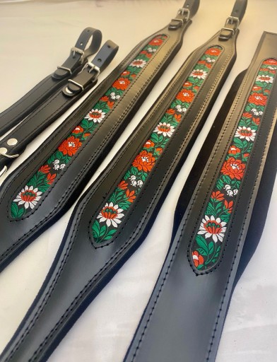 Zestaw skórzanych pasów do akordeonu razem z basowym na wymiar. Pasuje do akordeonu 96-120 basów. Rożna kolorystyka i super jakość.