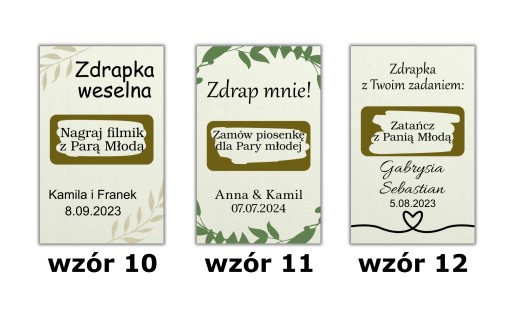 - Wybranego wzoru (w przypadku nie podania wzoru zdrapki zostaną wykonane takie jak na pierwszym zdjęciu aukcji).